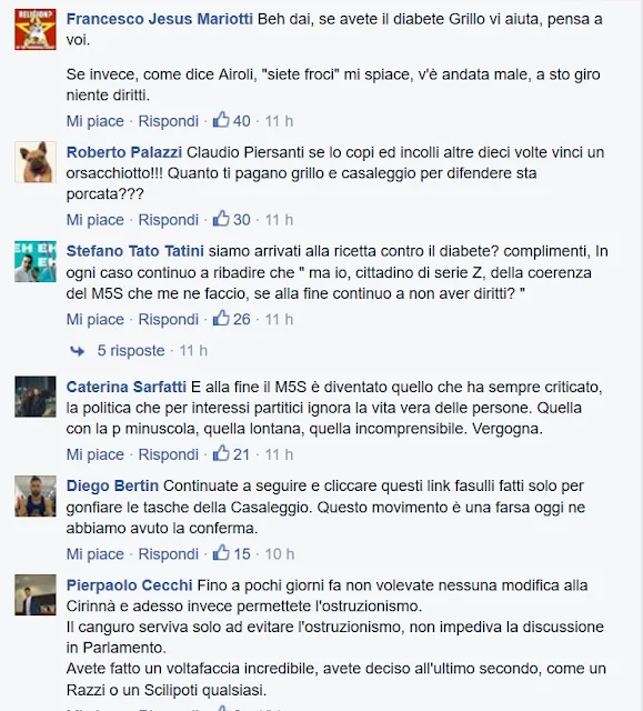 Il post pubblicato da Beppe Grillo subito dopo il dietrofront — una promozione di tisane pseudoscientifiche — fu percepito come una presa in giro e un tentativo di sviare l'attenzione. I commenti esplosero: accuse, sarcasmo, rabbia. Gli screenshot raccolti testimoniano una frustrazione diffusa, non solo per la scelta politica, ma per il modo in cui fu gestita la comunicazione.