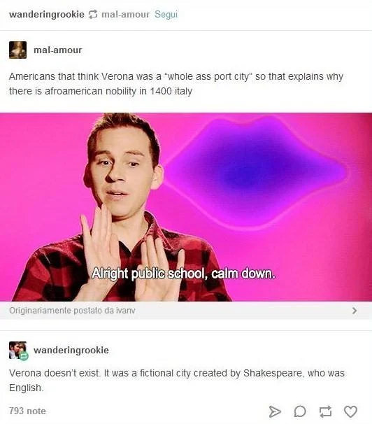 La polemica nasce da discussioni sui social network, in cui alcuni utenti fanno riferimento a teorie assurde basate su reinterpretazioni errate di eventi e personaggi storici. Ad esempio, commenti virali parlano di una Verona come città immaginaria, creata da Shakespeare per scopi letterari, e di una presunta "nobiltà afroamericana" presente in Italia addirittura prima della scoperta dell’America. Queste affermazioni non solo creano confusione, ma travisano i fatti storici fondamentali: nel 1400, il concetto di "afroamericano" era anacronistico. Gli Stati Uniti e, per estensione, qualsiasi riferimento tipico ad un’identità africano-americana non potevano esistere in quel contesto, rendendo l’idea priva di fondamento.